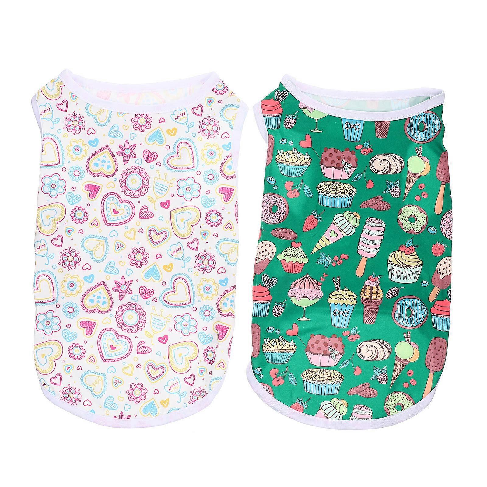 Breathable Dog Shirt Everyday Wear Pet Clothes Square Cut Ice Cream Pattern 2Pcs