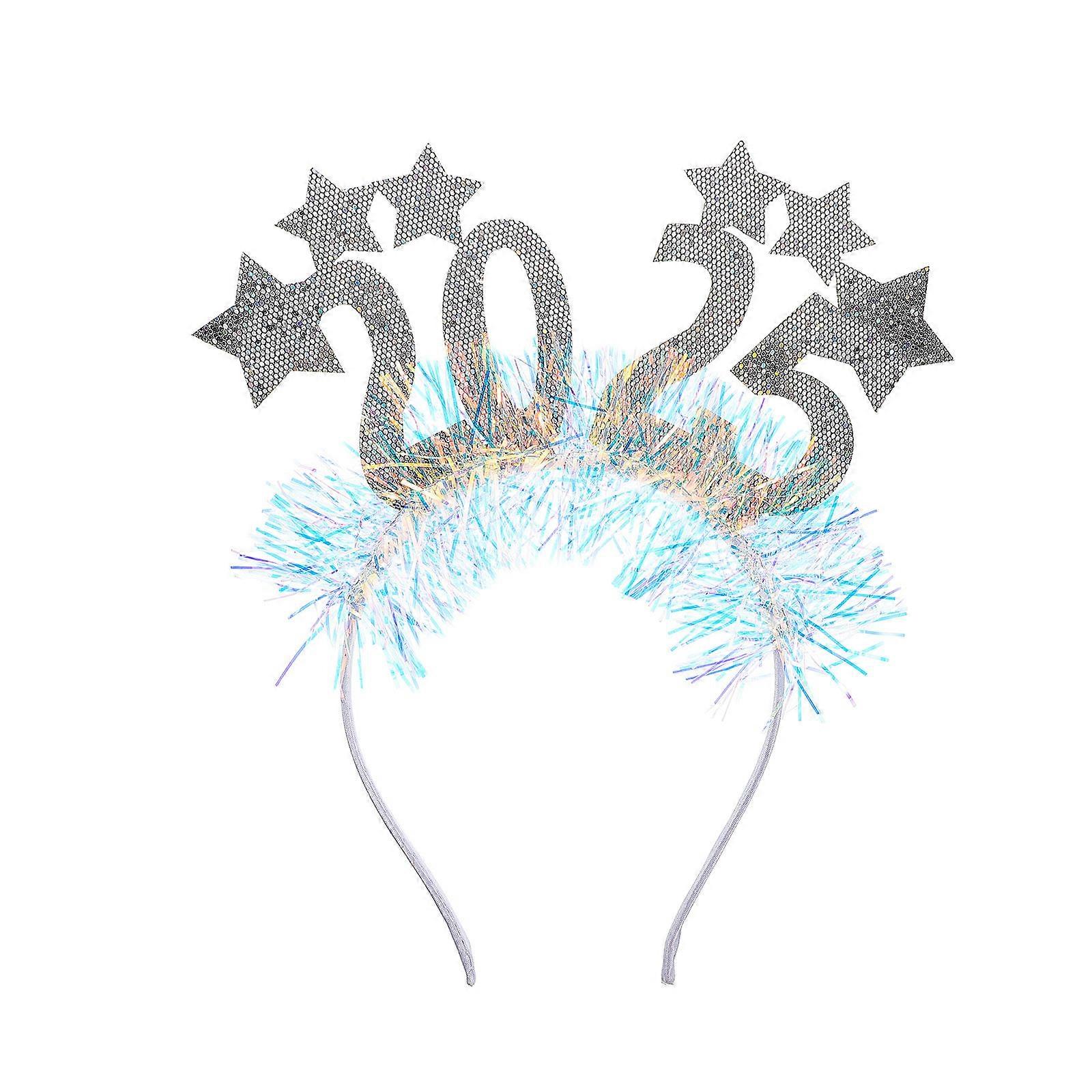 2025 New Year Tiara Silver Glitter Star Sequin Headwear for Party Reuse
