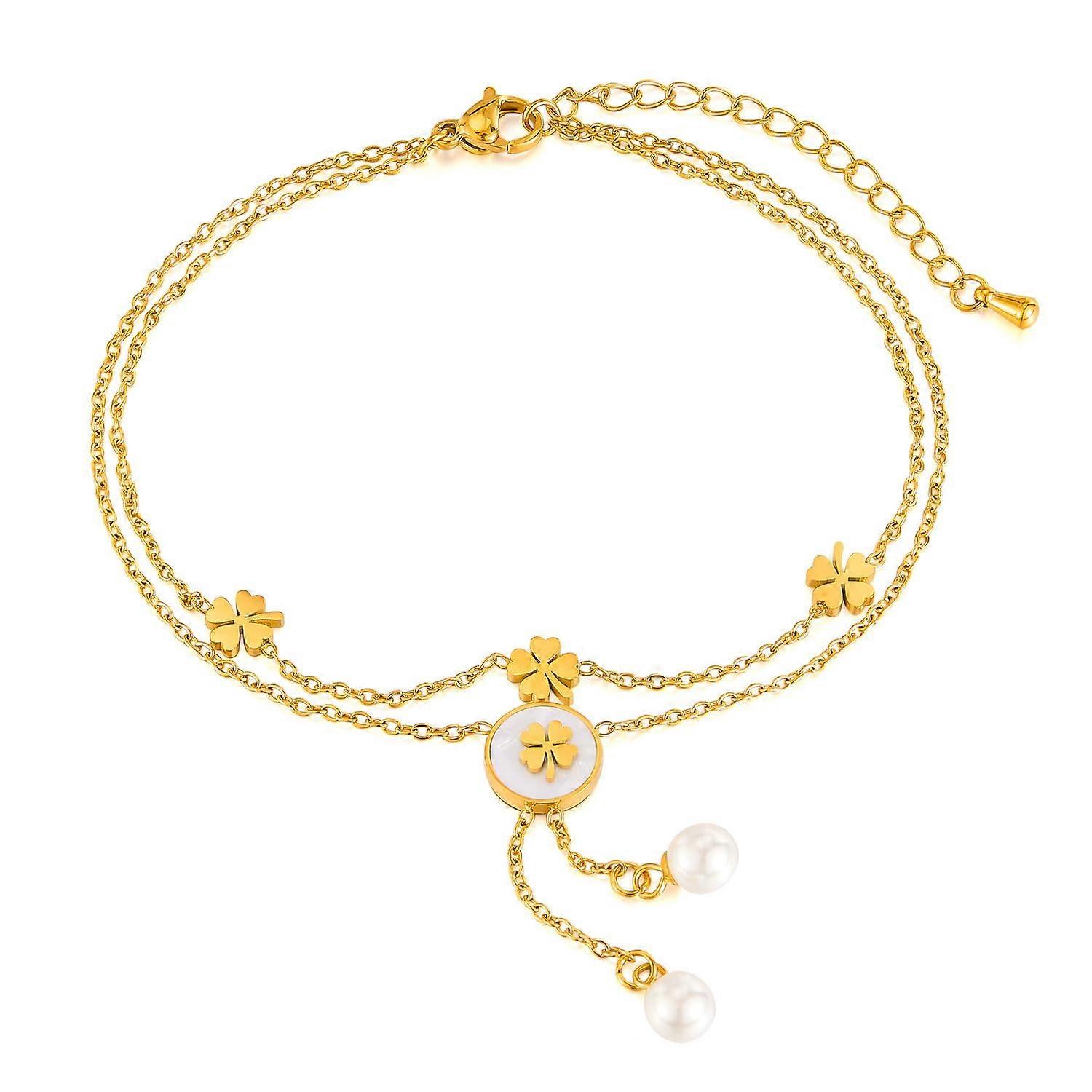 Small Batch Anklet For Women Stainless Steel Titanium Steel Elegant Tassel Pearl Clover Motif