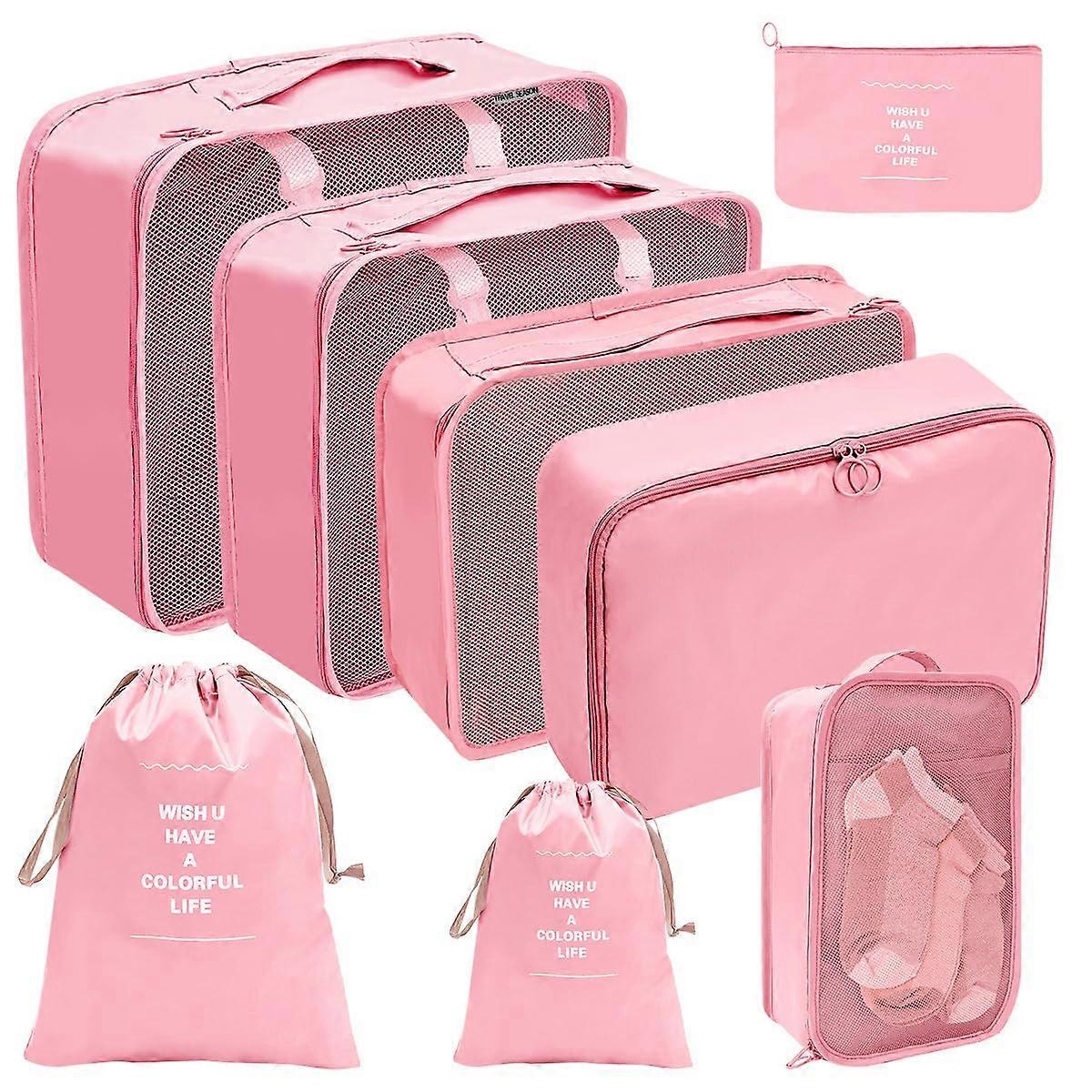 Suitcase Organiser Set 8 Piece Packing Cubes For Travel Packing Cube Organiser For Clothes Shoes Cosmetics Pink