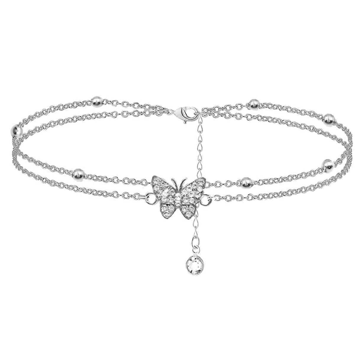 Butterfly Anklet Black Beaded Multi-Layer Ankle Chain Copper Silver Tone Funky Bead Ankle Bracelet