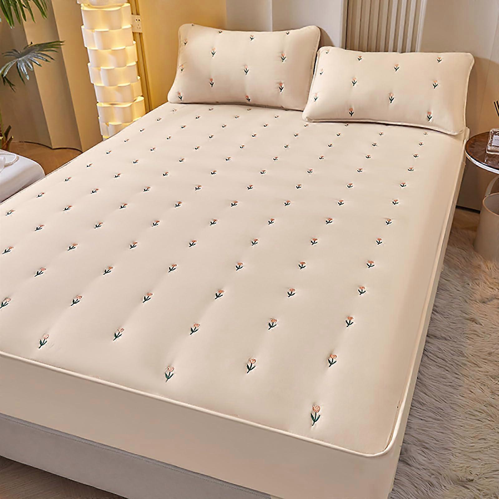 Sojafaser Stretch Fitted Sheet, Thick Mattress Cover, Quilted Bedspread, Brown Tulip, 180 x 220 cm for Bedroom