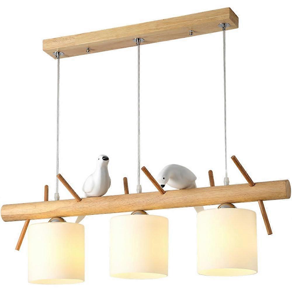 Kitchen Island Pendant Light 3 Bulb Vintage Wooden Chandelier with Glass Shade E27 Base for Dining Room Foyer Bar