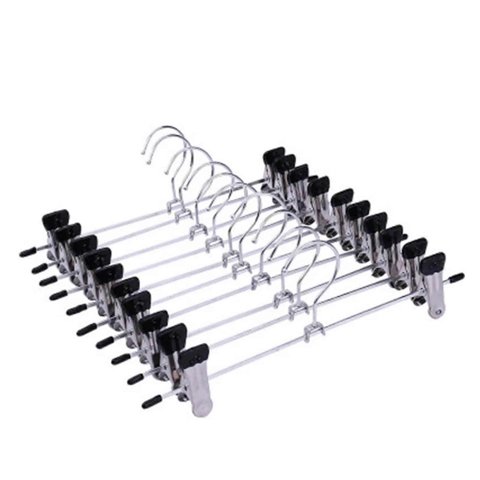 Stainless Steel Pants Hangers 10 Pack with 2 Clips Anti-Slip Trousers Skirt Clothes Holder for Dresses and Pants