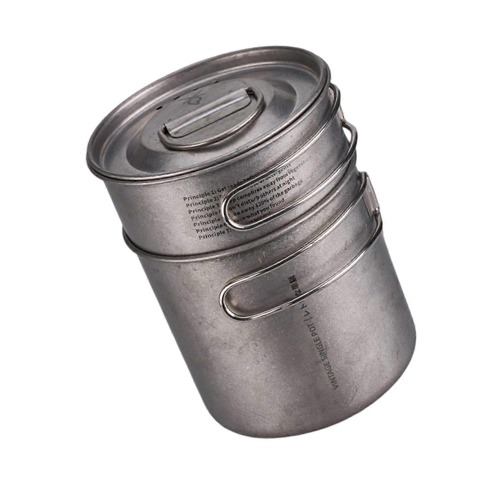 Stainless Steel Camping Cookware Set with Folding Handles for Outdoor Cooking and Picnic Use