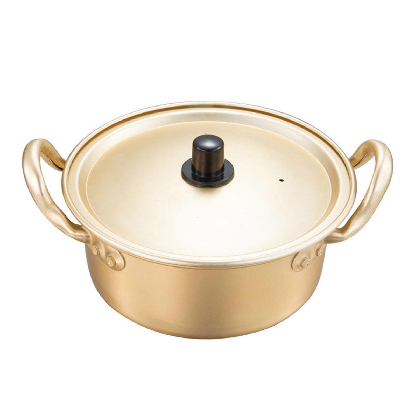 Korean Ramen Cooking Pot with Double Handles Aluminium Noodle Pan for Home Dorm Camping Gold