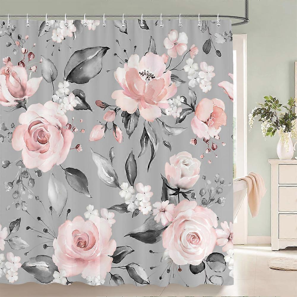 Elegant Flower Shower Curtain,W210xH180cm,Floral Print,Polyester Bath Curtain,Bathroom Decor,Washable with Hooks~09290