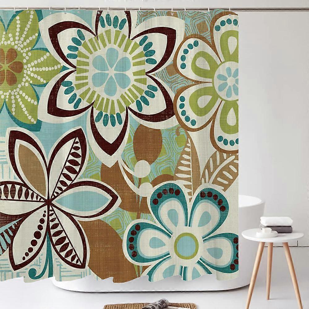 Elegant Flower Shower Curtain, W180xH180cm, Floral Print, Polyester Bath Curtain, Bathroom Decor, Washable with Hooks~09340