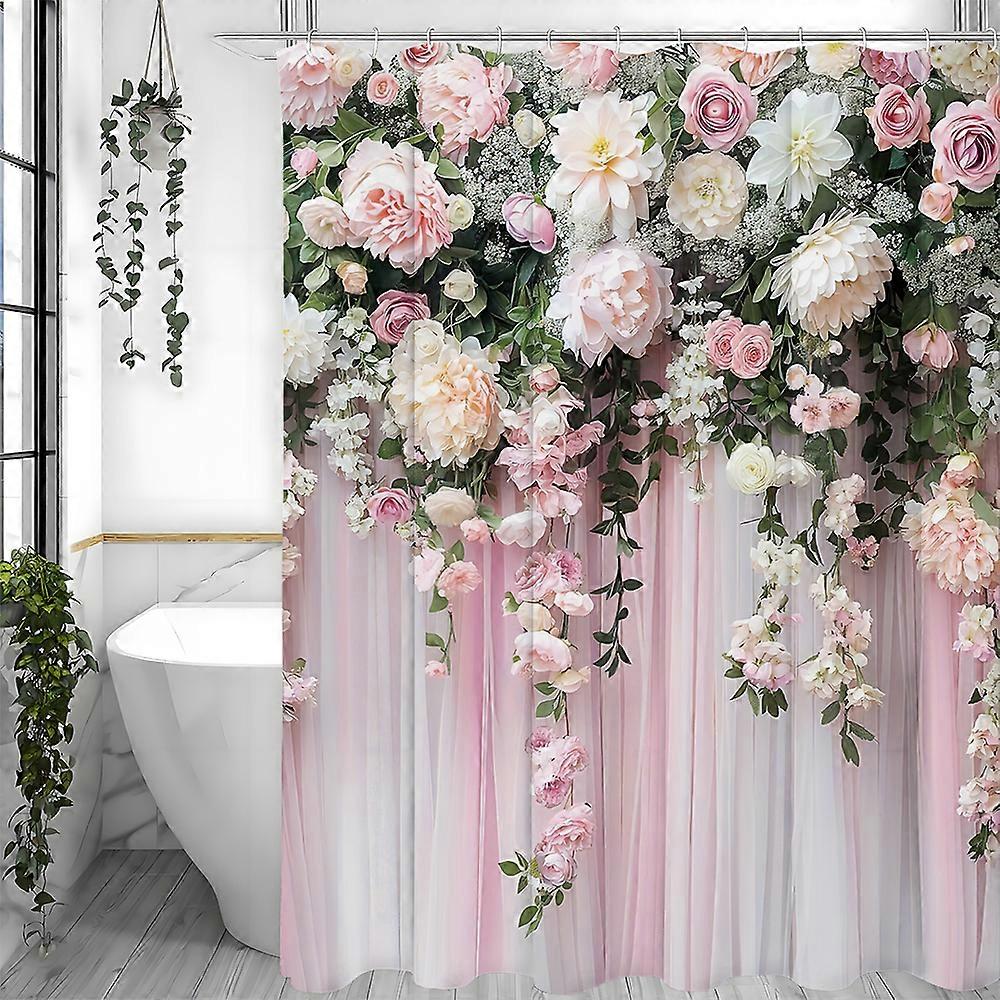 Pink Flower Shower Curtain for Women Bridal Wedding Romantic Pink Flower Suitable for Girls and Ladies Bathroom Decor Sh,150*180 cm~09180