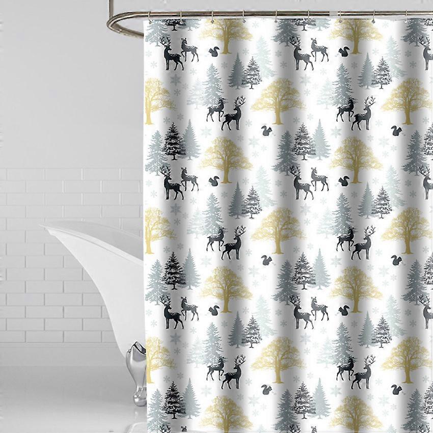 Modern Shower Curtains Geometric Flowers Cartoon Bath Curtain Cortina Polyester Waterproof for Bathroom with 12 Plastic Hooks,W120xH200cm~09036