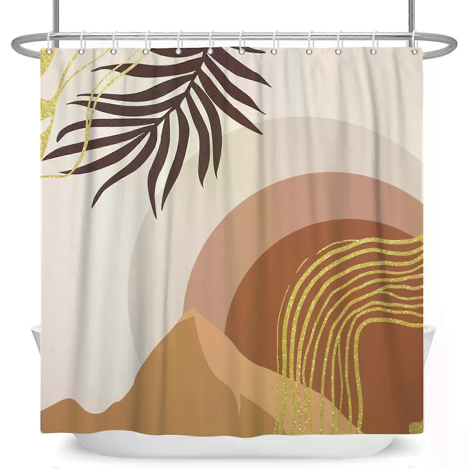 Mid Century Abstract Shower Curtain Arch Sun Moon Minimalist Geometric Curve Stripes Fabric Christmas Landscape Curtain Hook,180x180cm-70x70in~08923