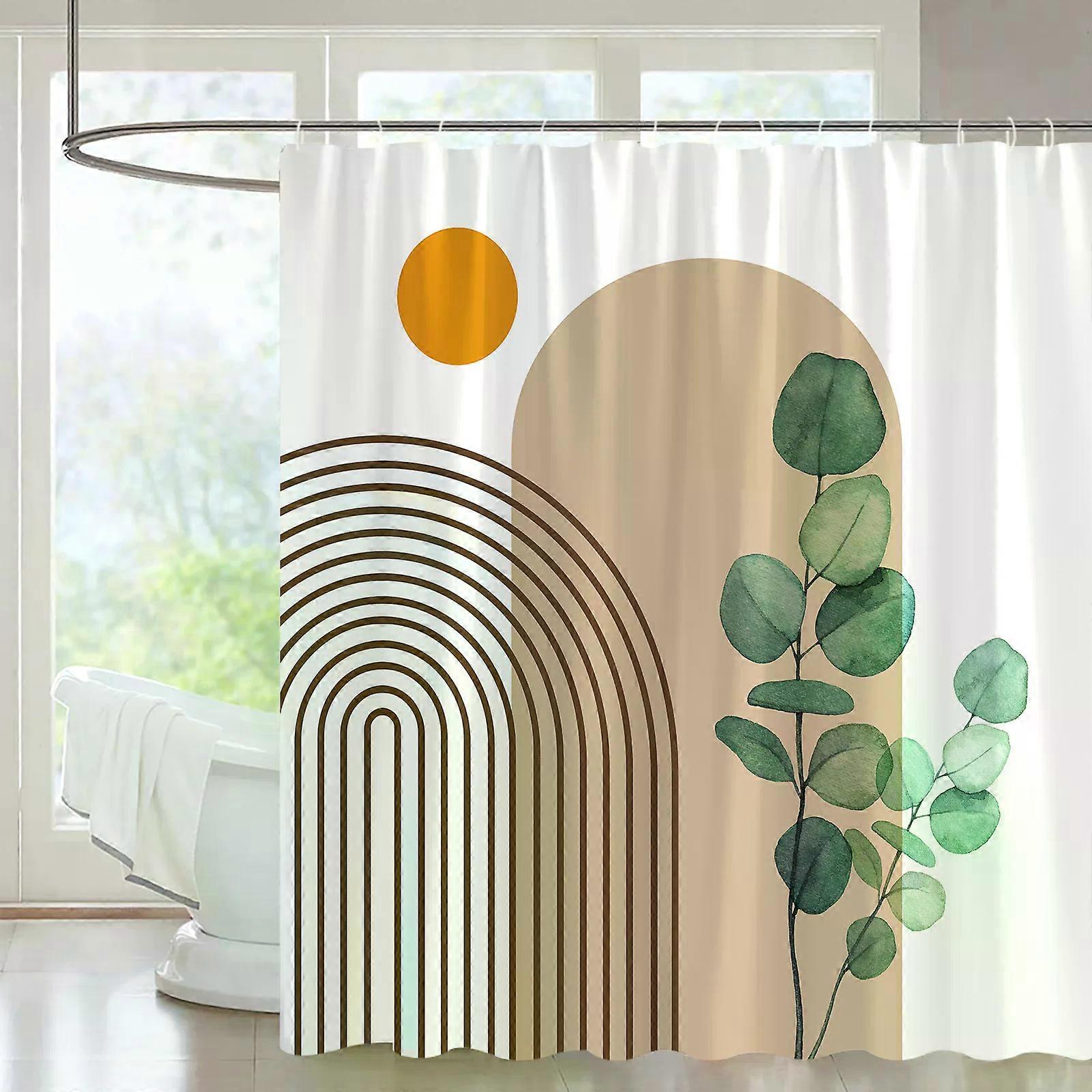 Mid Century Abstract Shower Curtain Arch Sun Moon Minimalist Geometric Curve Stripes Fabric Christmas Landscape Curtain Hook 180x210cm-70x83in~08828