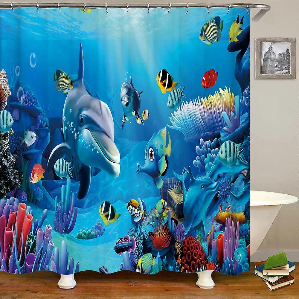 Underwater World Fish Turtle 3D Shower Curtains Ocean Dolphin Sea Landscape Waterproof Fabric Bath Curtain Bathroom Decor Screen,W120xH180cm~08304