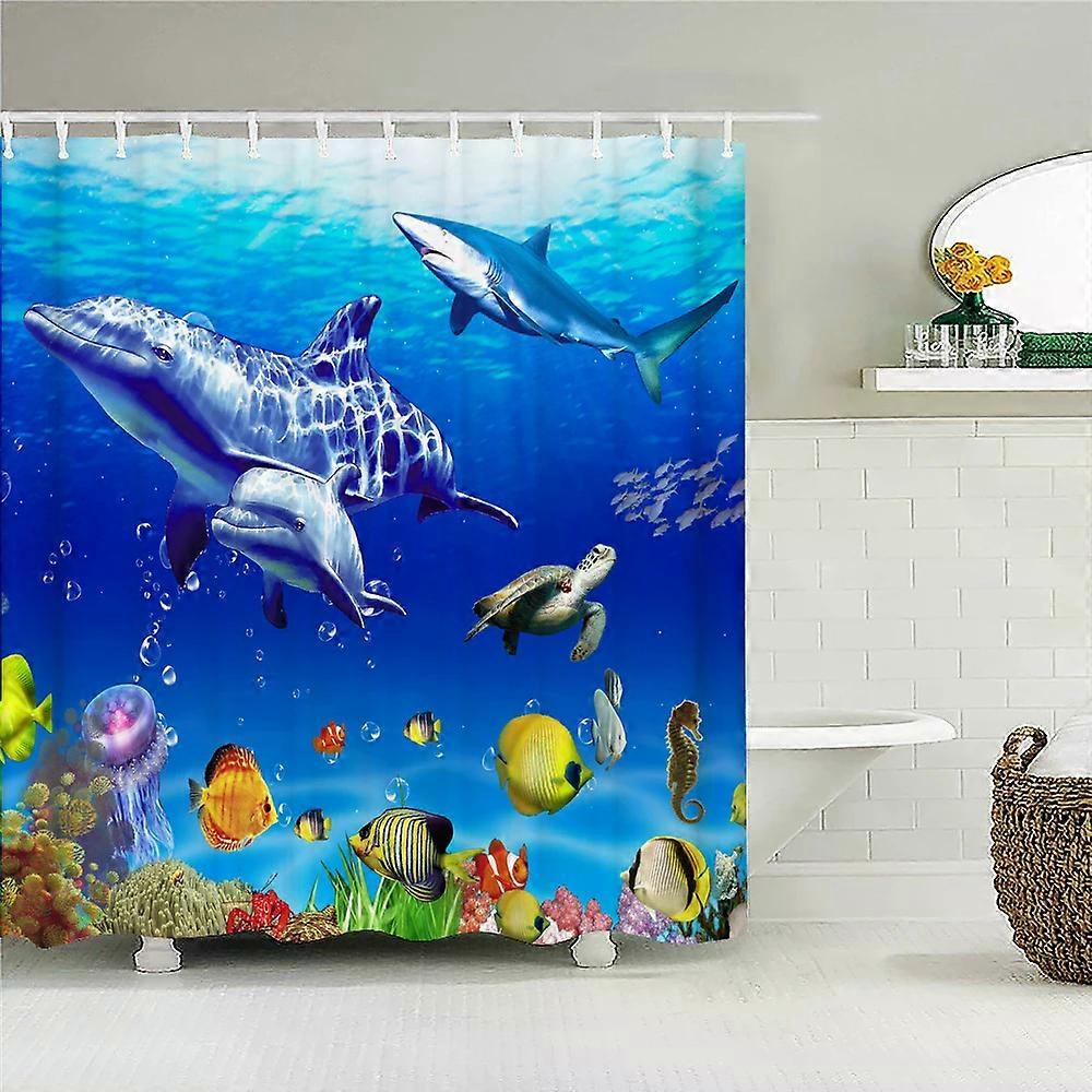 Underwater World Fish Turtle 3D Shower Curtains Ocean Dolphin Sea Landscape Waterproof Fabric Bath Curtain Bathroom Decor Screen,W150xH180cm~08348