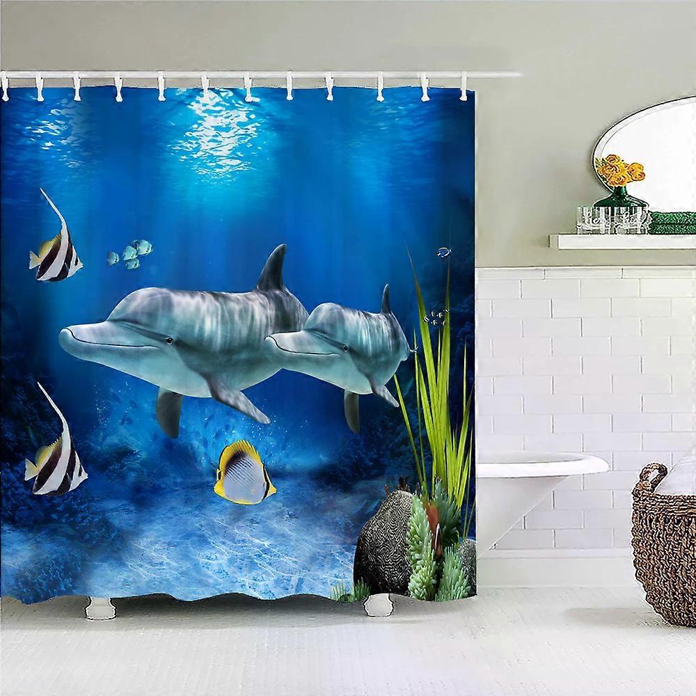 Underwater World Fish Turtle 3D Shower Curtains Ocean Dolphin Sea Landscape Waterproof Fabric Bath Curtain Bathroom Decor Screen,W150xH180cm~08364