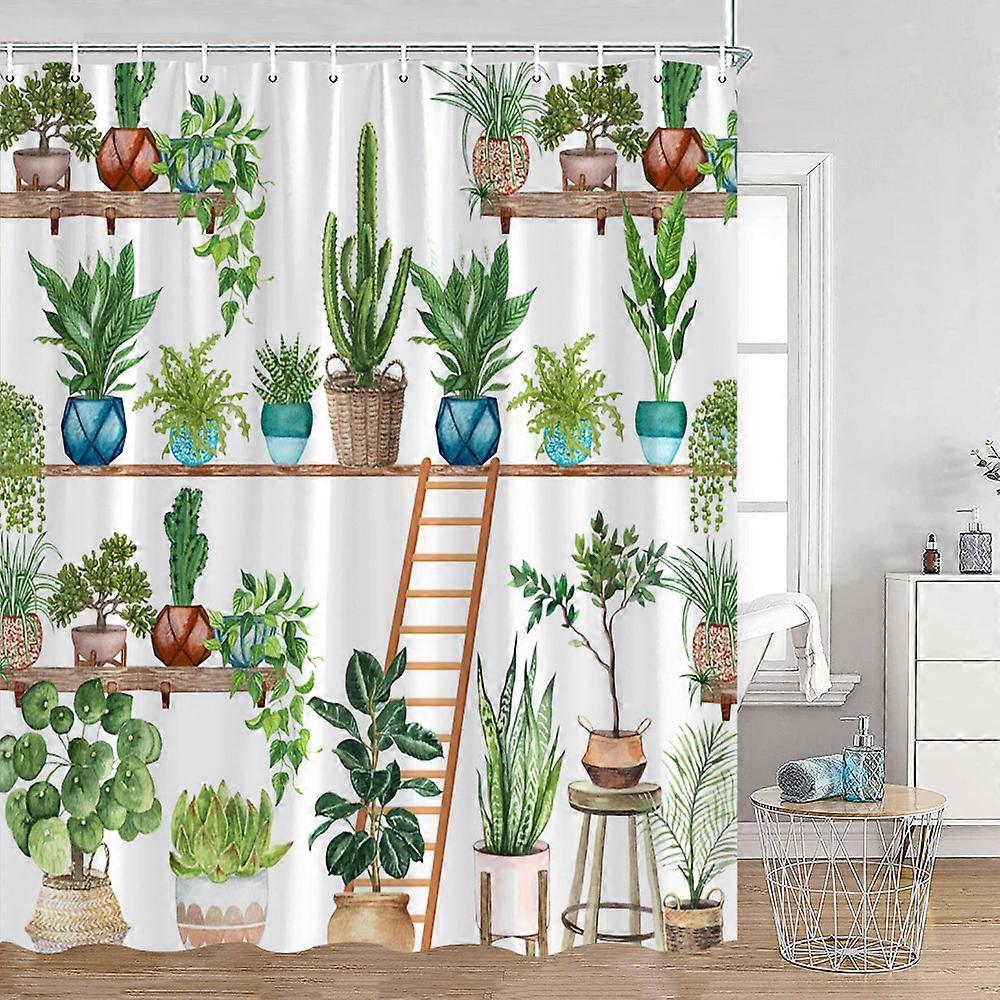 Plant Shower Curtain Cats Green Potted Plants Leaves Cat on Toilet Modern Bathroom Decor Polyester Fabric Bathtub Curtain,220x180cm-86x70in~08015