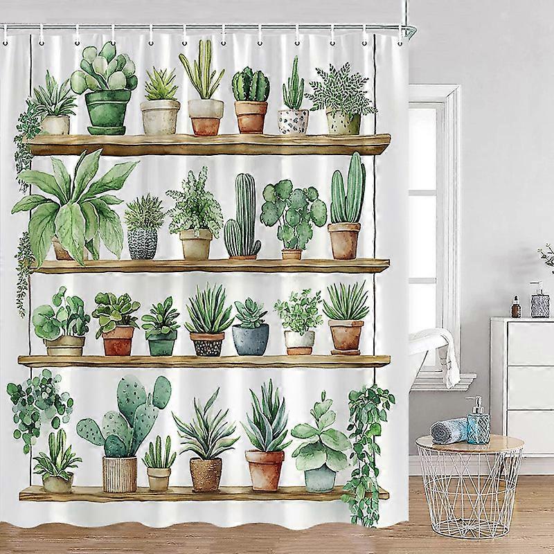 Plant Shower Curtain Cats Green Potted Plants Leaves Cat on Toilet Modern Bathroom Decor Polyester Fabric Bathtub Curtain,120x180cm-47x70in~07987