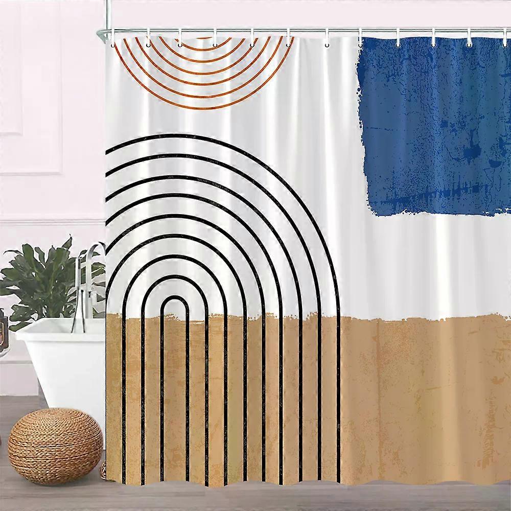Modern Black Shower Curtain Set with Hooks, Black and White Shower Curtain for Bathroom, Geometric Fabric Bath Curtains with Hooks,90x180cm-35x70in
