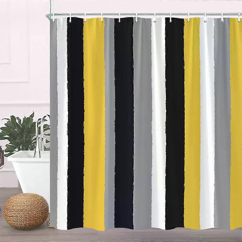 Modern Black Shower Curtain Set with Hooks, Black and White Shower Curtain for Bathroom, Geometric Fabric Bath Curtains with Hooks,210x180cm-82x70in