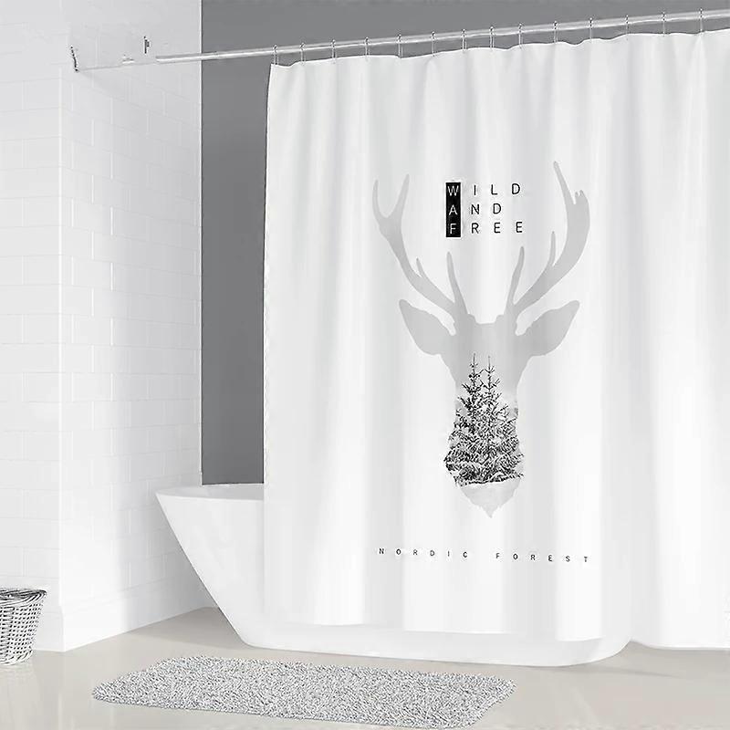 Nordic Geometric Simple Chandelier Printed Bathroom Shower Curtain, Polyester Waterproof Home Decor Curtain with 12 Hooks,W180xH240cm~06972