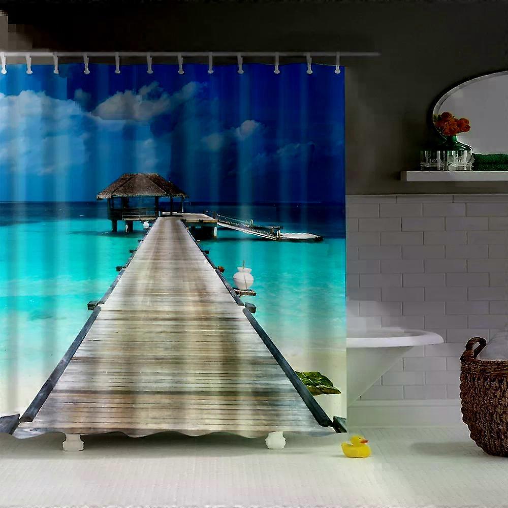 Seaside Scenic Beach Shells Shower Curtains Starfish Conch Panel Blue Palm Trees Sunset Nature Landscape Bathroom Curtain Decor,90x180cm-35x70in~06091