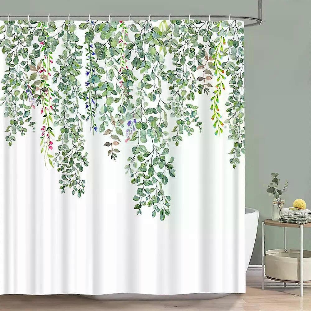 Sage Green Shower Curtain, Botanical Plant, Eucalyptus Leaf, Watercolor, Green Leaves, Floral Bath Curtains, Fabric Bathroom Decor, W165xH180cm~05886