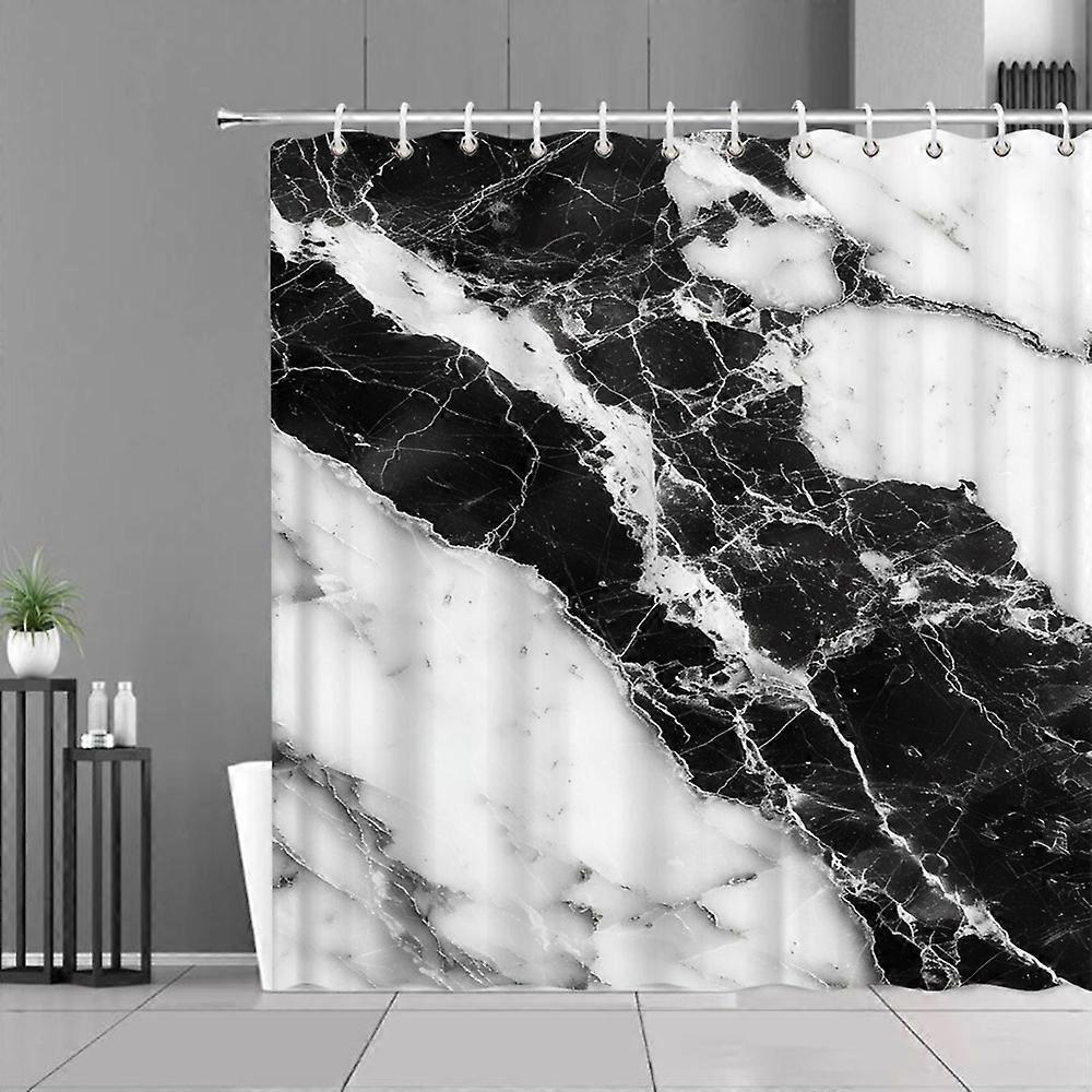 Gold Gray Cracked Marble Shower Curtain Set, Modern Creative Marble Texture Fabric Bathroom Decor Curtain and Non-Slip Bath Mat, W180xH180cm~04851