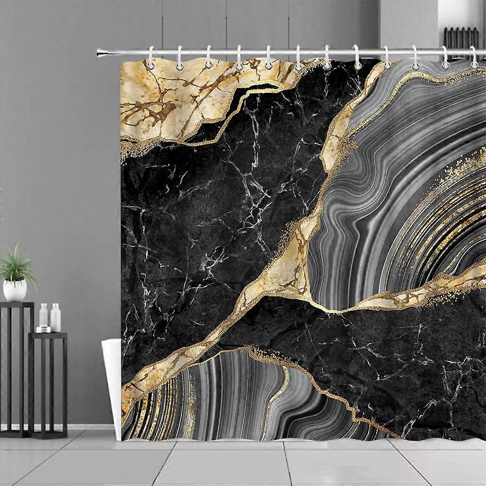 Gold Gray Cracked Marble Shower Curtain Set, Modern Creative Marble Texture Fabric Bathroom Decor Curtain and Non-Slip Bath Mat, W240xH180cm~04842