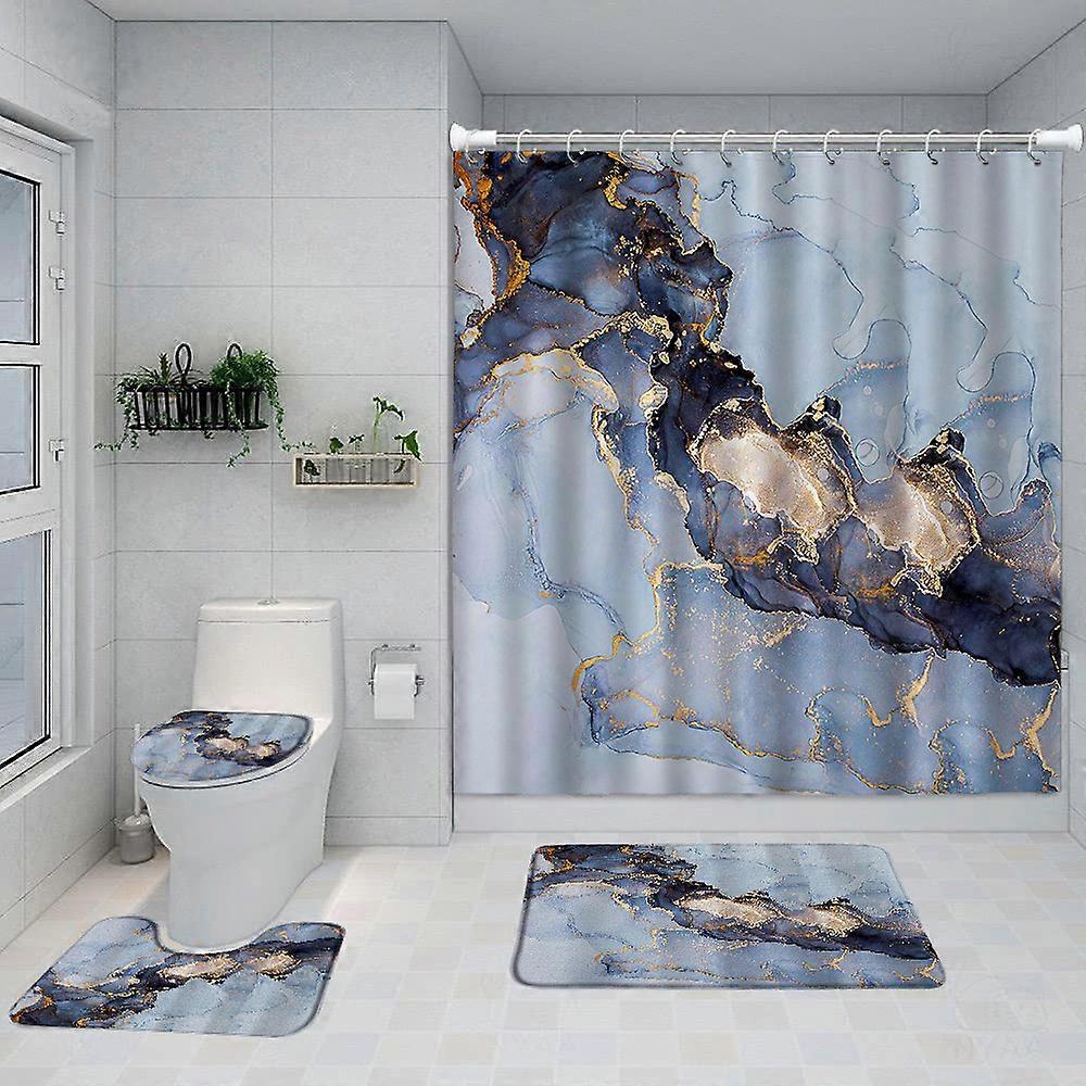 Gold Gray Cracked Marble Shower Curtain Set, Modern Creative Marble Texture Fabric Bathroom Decor Curtain and Non-Slip Bath Mat, W150xH180cm~04871