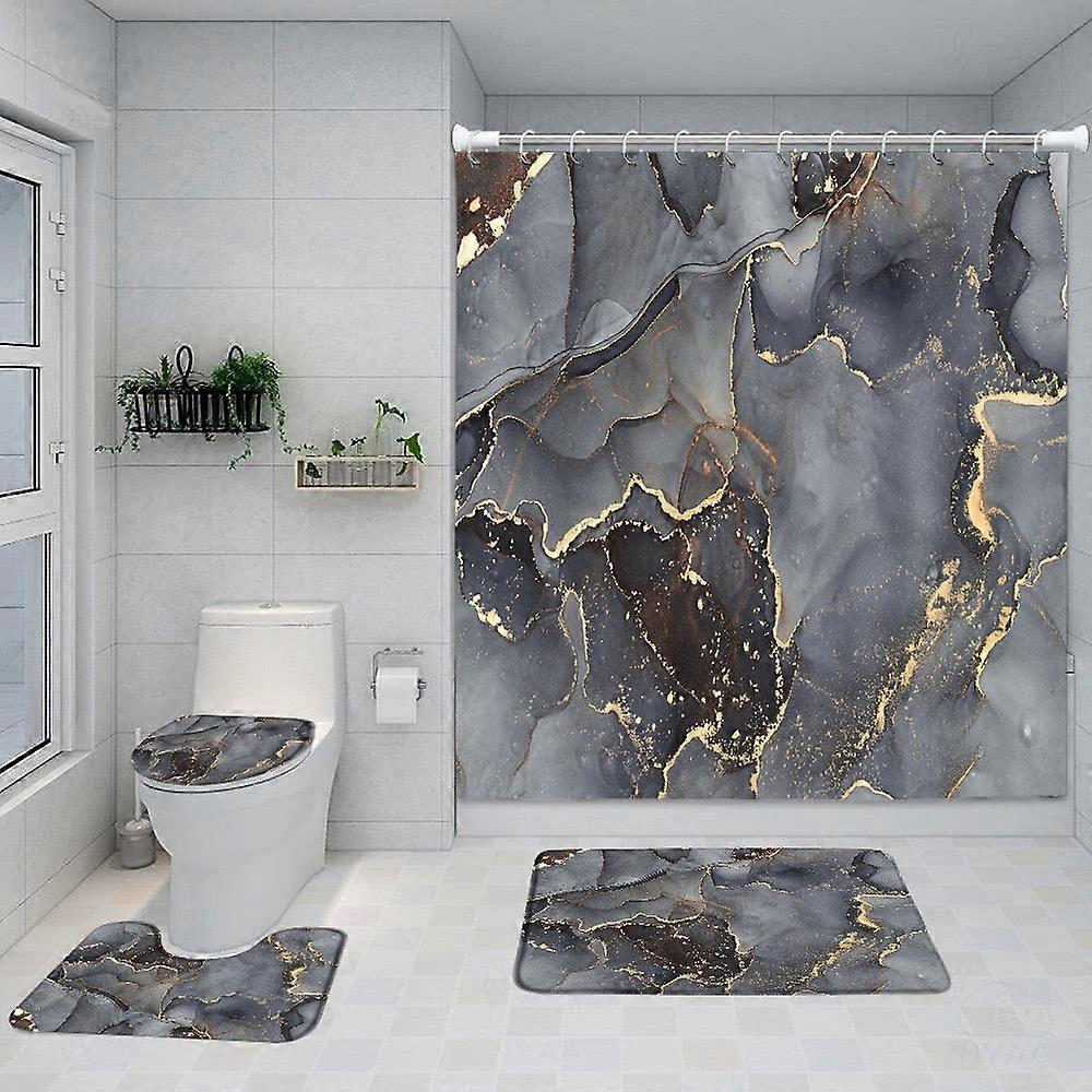 Gold Gray Cracked Marble Shower Curtain Set, Modern Creative Marble Texture Fabric Bathroom Decor Curtain and Non-Slip Bath Mat, W180xH230cm~04923