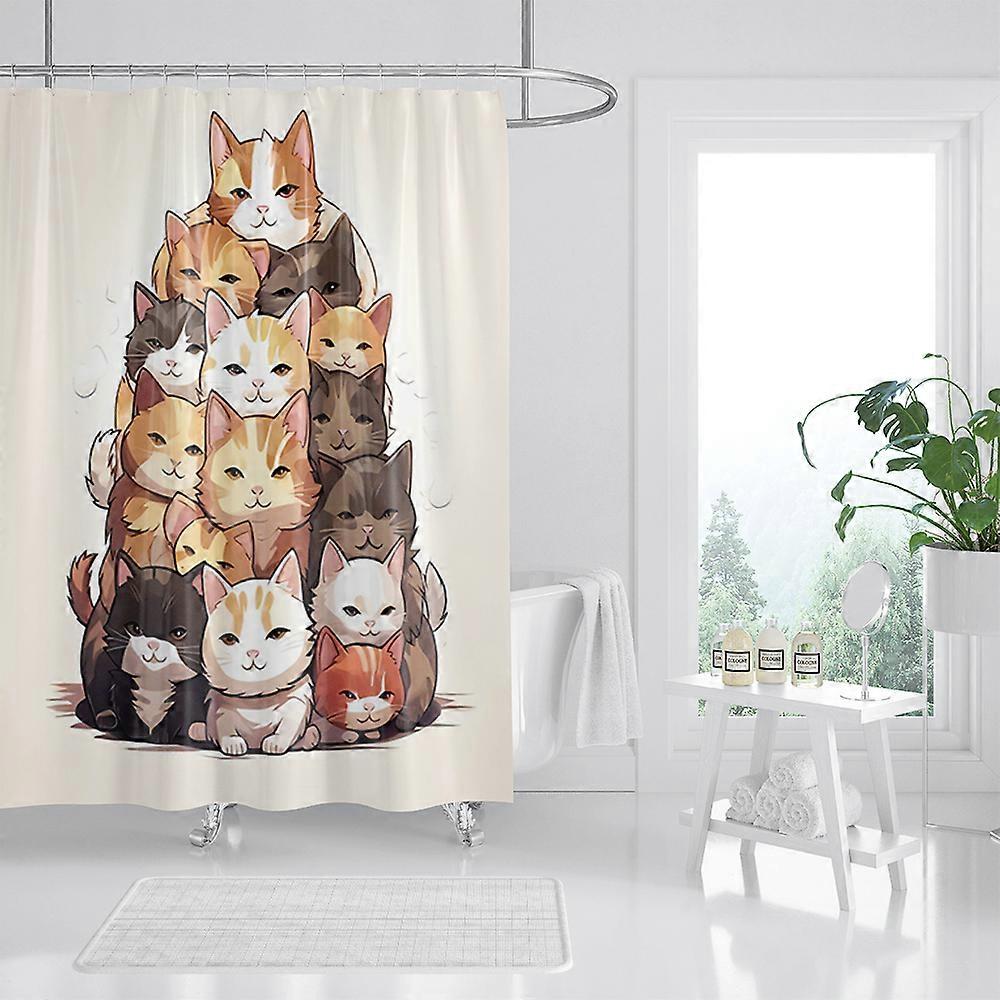 Animal Shower Curtain, Cartoon Cat Dog Bathtub Shower Cute Kids Boys Girls Bathroom Decorative Shower Curtains, 180x180cm-70x70in~04446