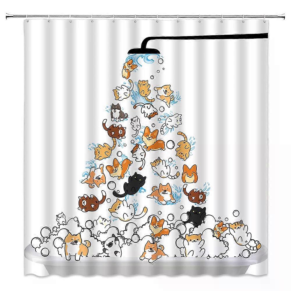 Animal Shower Curtain, Cartoon Cat Dog Bathtub Shower Cute Kids Boys Girls Bathroom Decorative Shower Curtains,210x180cm-82x70in~04371