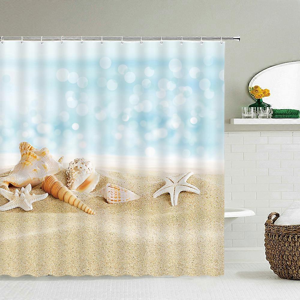 Beach Sea Landings Shower Curtains, 3D Waterproof Bathroom Curtains with Hooks, Home Decor, Washable Bath Screen, W210xH180cm~04022