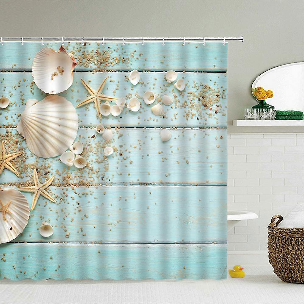 Beach Sea Landings Shower Curtains, 3D Waterproof Bathroom Curtains with Hooks, Home Decor, Washable Bath Screen, W150xH180cm~04012
