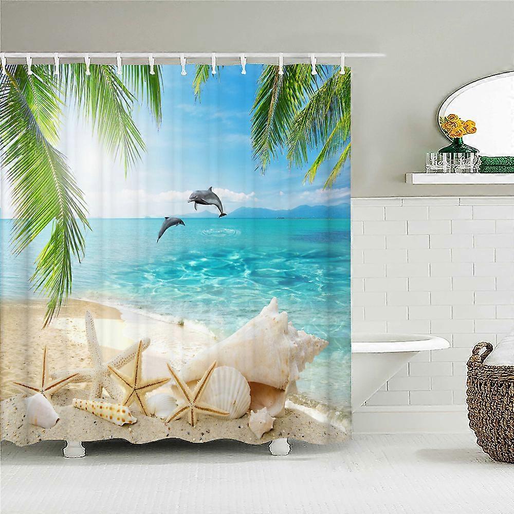 Beach Sea Landings Shower Curtains, 3D Waterproof Bathroom Curtains with Hooks, Home Decor, Washable Bath Screen, W180xH200cm~03969