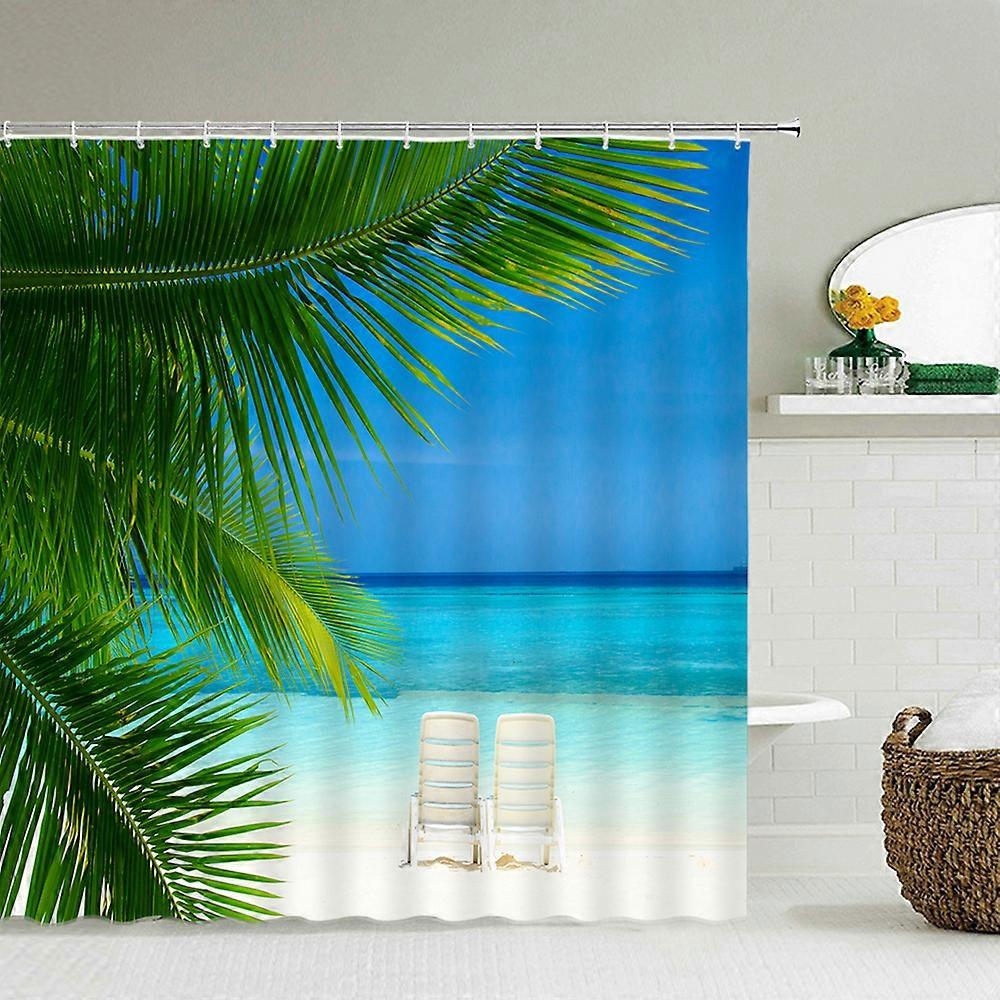 Beach Sea Landings Shower Curtains, 3D Waterproof Bathroom Curtains with Hooks, Home Decor, Washable Bath Screen, W300xH180cm~03865