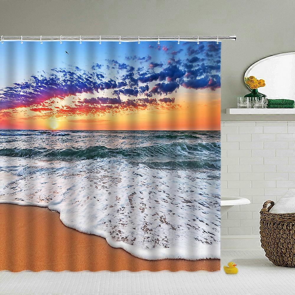 Beach Sea Landings Shower Curtains, 3D Waterproof Bathroom Curtains with Hooks, Home Decor, Washable Bath Screen, W180xH180cm~03871