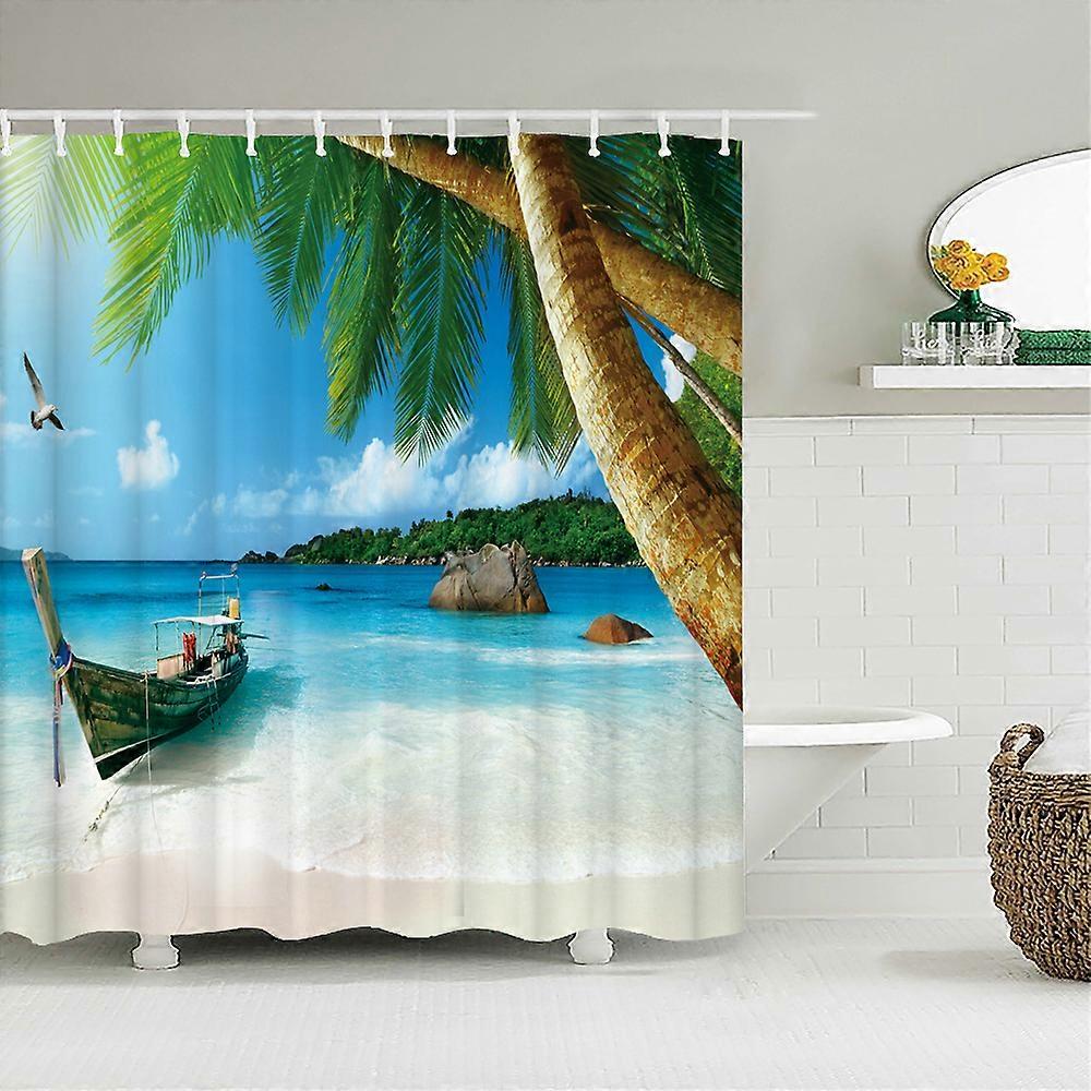 Beach Sea Landings Shower Curtains, 3D Waterproof Bathroom Curtains with Hooks, Home Decor, Washable Bath Screen, W180xH200cm~03888