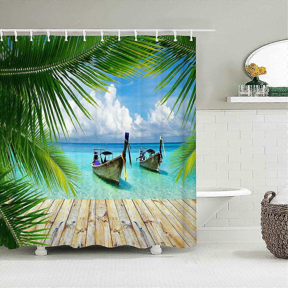 Beach Sea Landings Shower Curtains, 3D Waterproof Bathroom Curtains with Hooks, Home Decor, Washable Bath Screen, W210xH180cm~03797