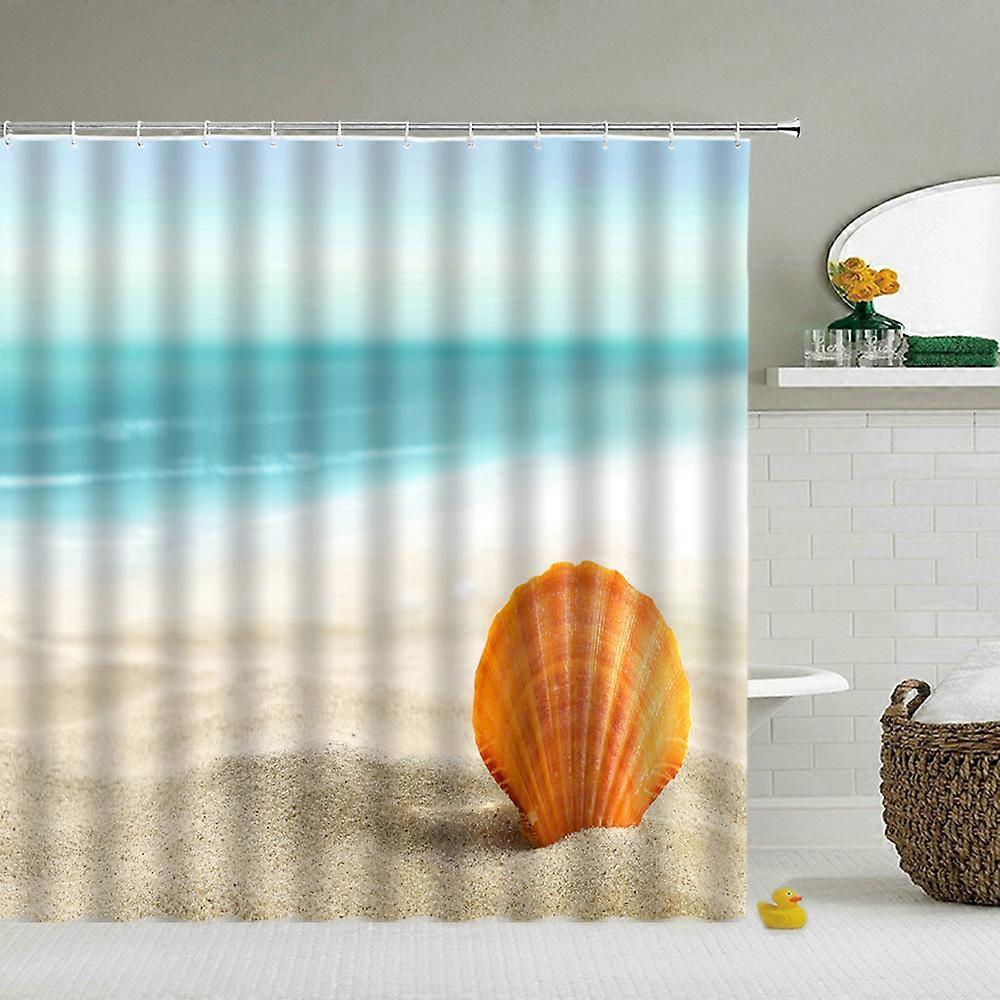 Beach Sea Landings Shower Curtains, 3D Waterproof Bathroom Curtains with Hooks, Home Decor, Washable Bath Screen, W300xH180cm~03811