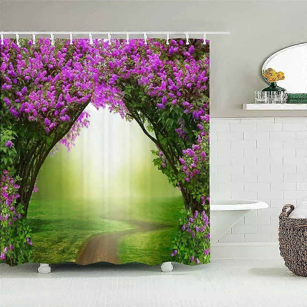 Forest Natural Landscape Shower Curtains 3D Print Polyester Washable Fabric with Hooks Home Decorative Screen,W180xH220cm~03457