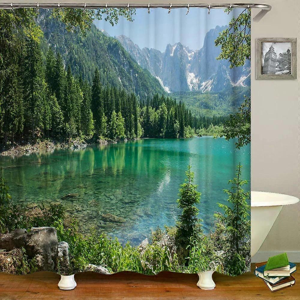 Forest Natural Landscape Shower Curtains 3D Print Polyester Washable Fabric with Hooks Home Decorative Screen,W180xH240cm~03362