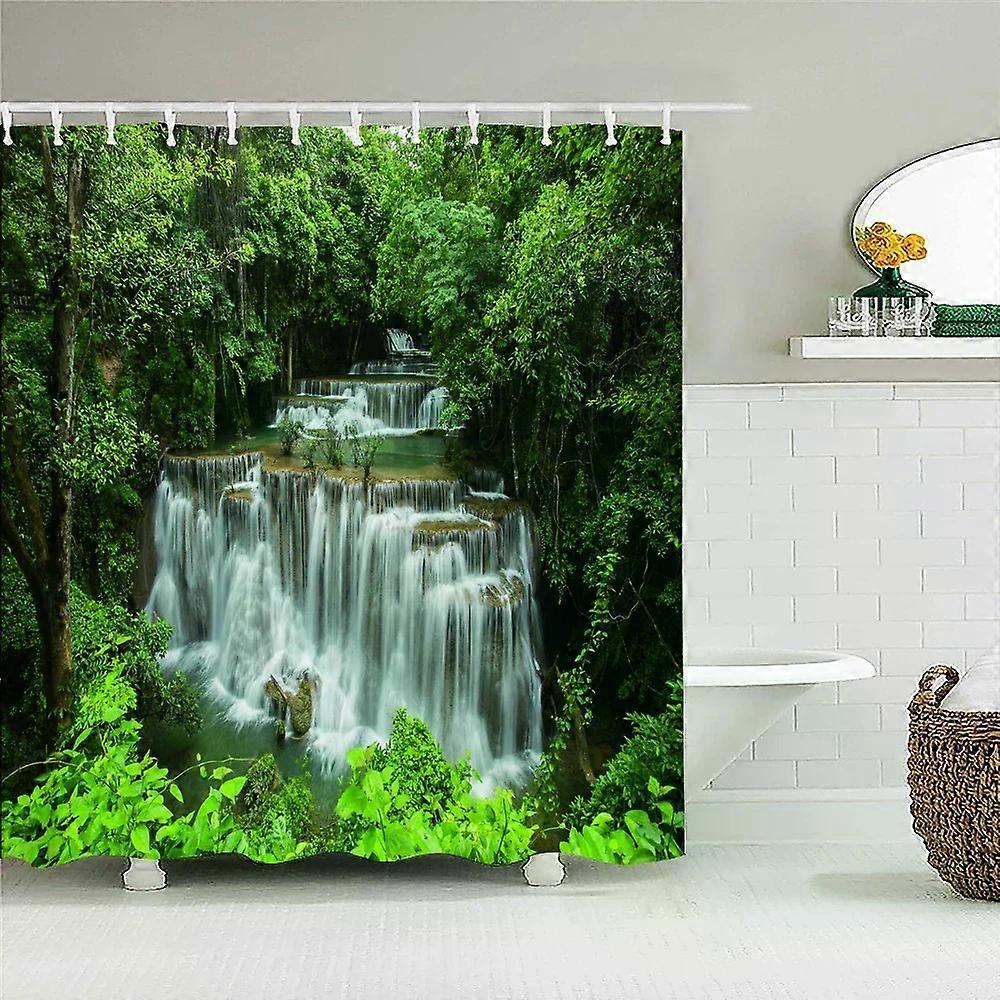 Forest Natural Landscape Shower Curtains 3D Print Polyester Washable Fabric with Hooks Home Decorative Screen,W240xH180cm~03442