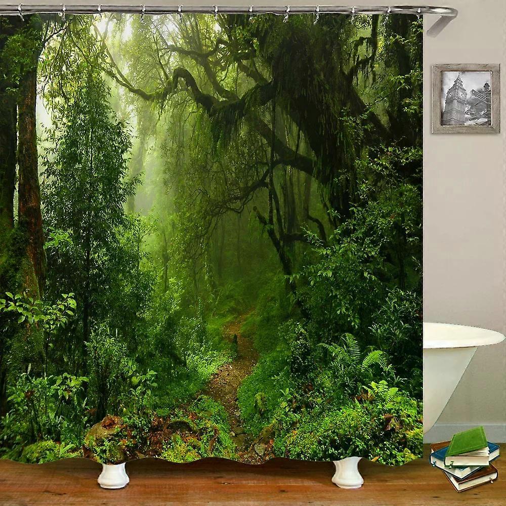 Forest Natural Landscape Shower Curtains 3D Print Polyester Washable Fabric with Hooks Home Decorative Screen,W240xH180cm~03334