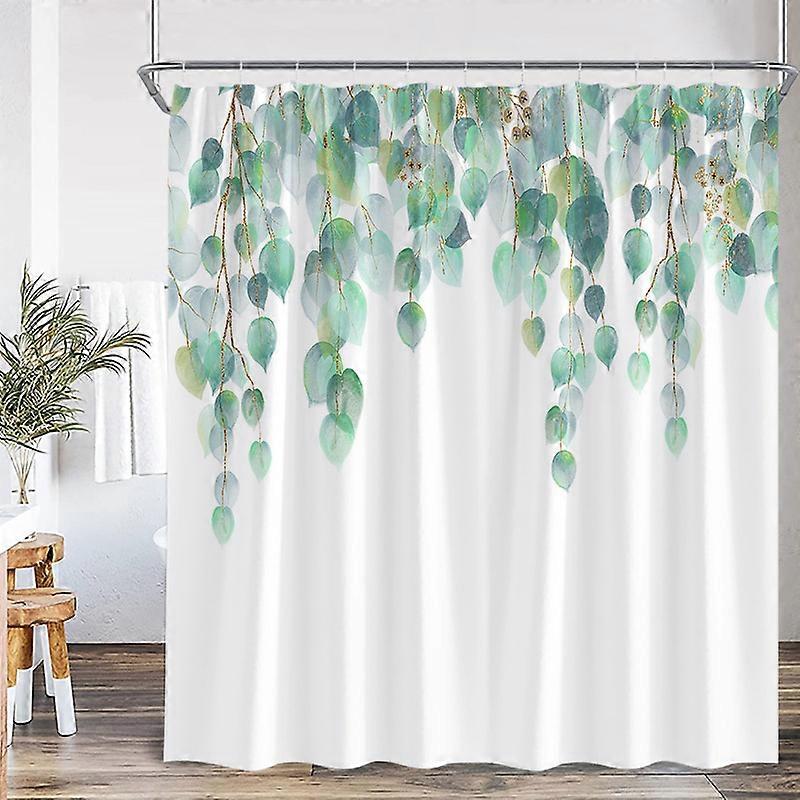 Eucalyptus Leaves Shower Curtains Autumn Brown Leaf Watercolor Plants Modern Bath Curtain Polyester Fabric Home Bathroom Decor,200x180cm-78x70in~03054