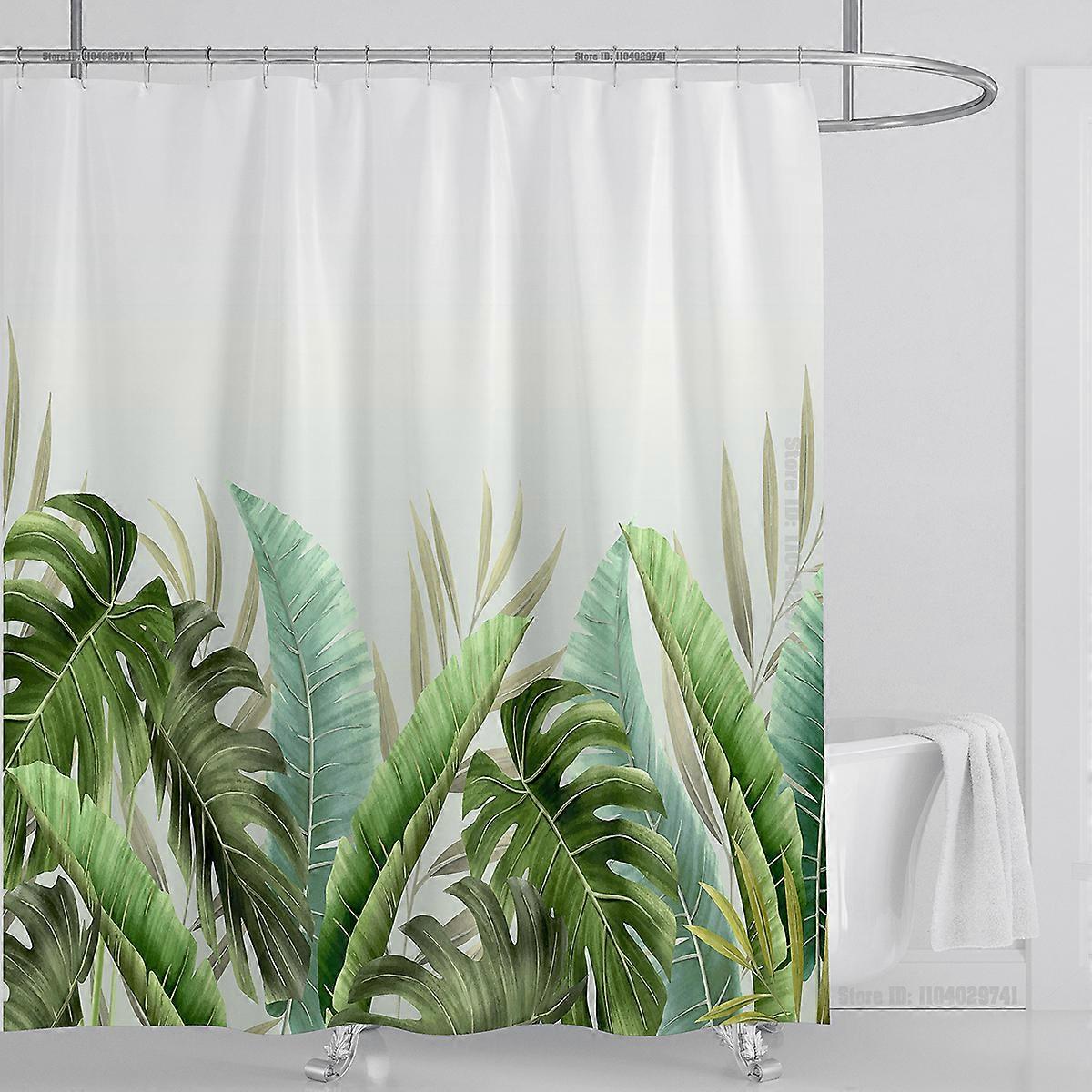 Watercolor Leaves Shower Curtain Set Waterproof Floral Plant Leaves Fabric Bathroom Curtains with Hooks,W200xH180cm~02675