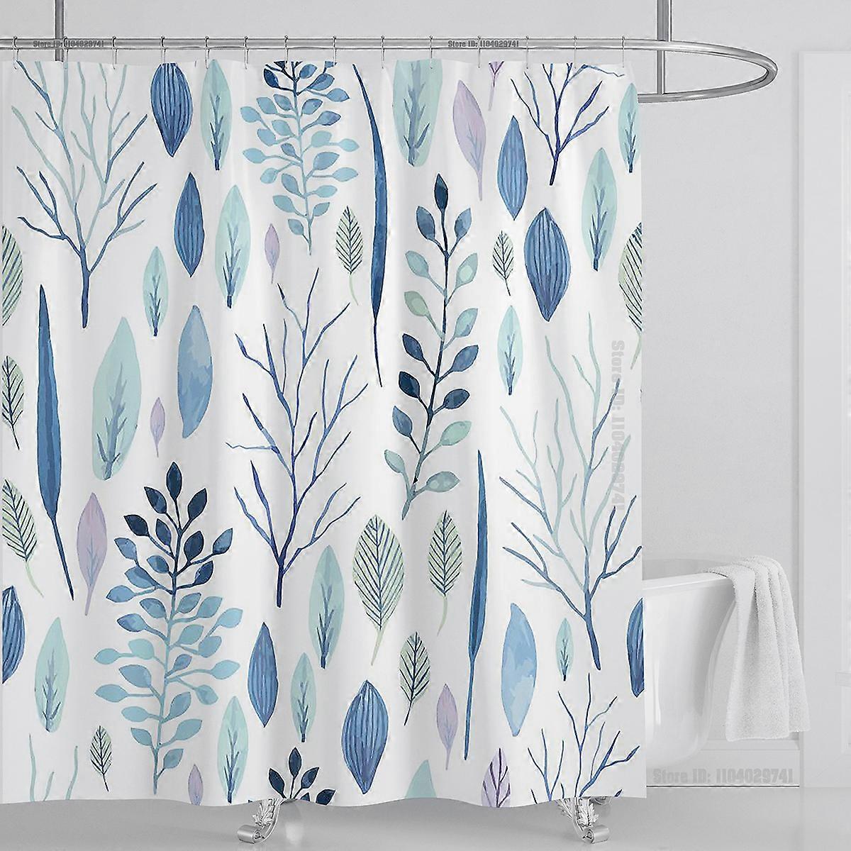 Watercolor Leaves Shower Curtain Set Waterproof Floral Plant Leaves Fabric Bathroom Curtains with Hooks,W90xH180cm~02571