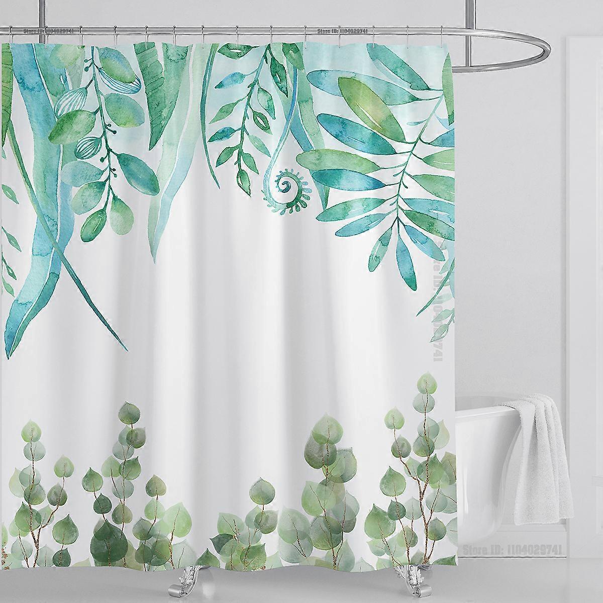 Watercolor Leaves Shower Curtain Set Waterproof Floral Plant Leaves Fabric Bathroom Curtains with Hooks,W180xH240cm~02690