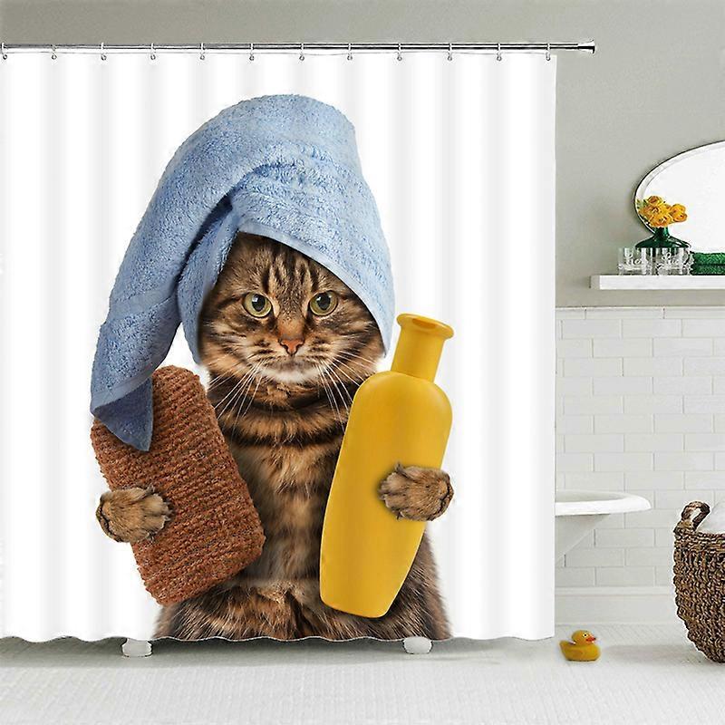 Funny Shower Curtains Bathroom Curtain with Hooks Waterproof Decor Cat Dog 3D Bath W240xH180cm Creative Personality Shower Curtain~02073