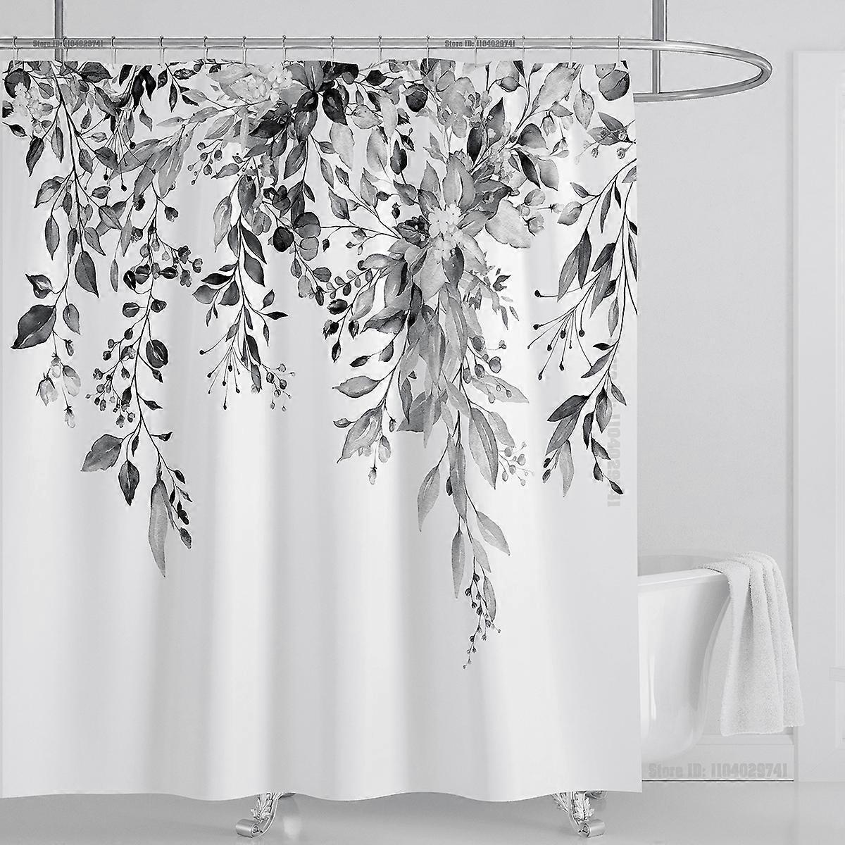 Emerald Green Eucalyptus Shower Curtain Fabric, Interconnecting Plant Leaves with Floral Shower Curtain Set with Hooks, W120xH180cm~01778